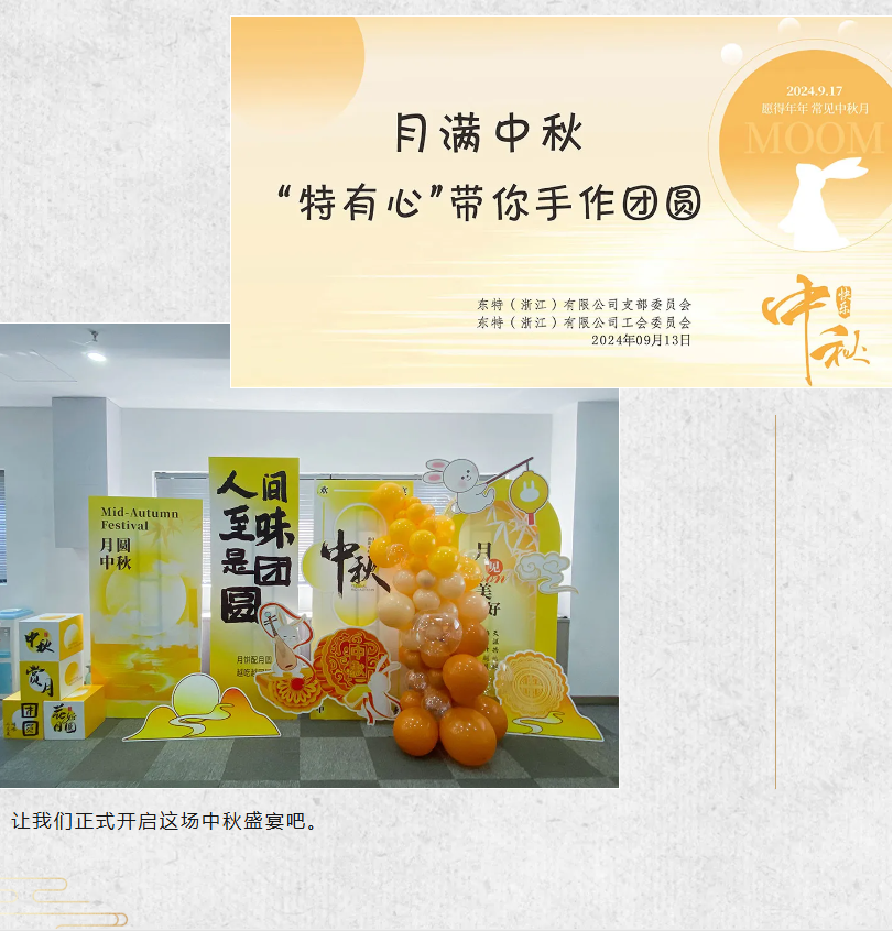 東特(浙江)有限公司黨支部、工會(huì)舉辦“特有心”迎中秋活動(dòng),為全體員工送上了節(jié)日的祝福與豐厚的福利。