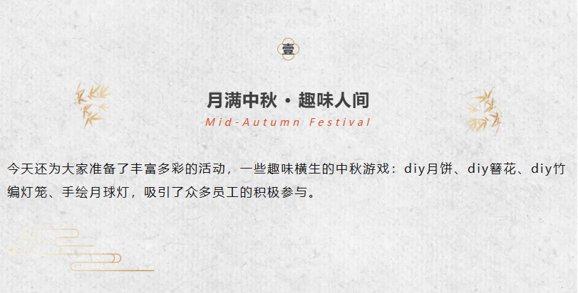 在這個(gè)金風(fēng)送爽、桂花飄香的季節(jié)里,為了弘揚(yáng)中華民族傳統(tǒng)文化,豐富員工的業(yè)余生活,增強(qiáng)公司團(tuán)隊(duì)凝聚力,