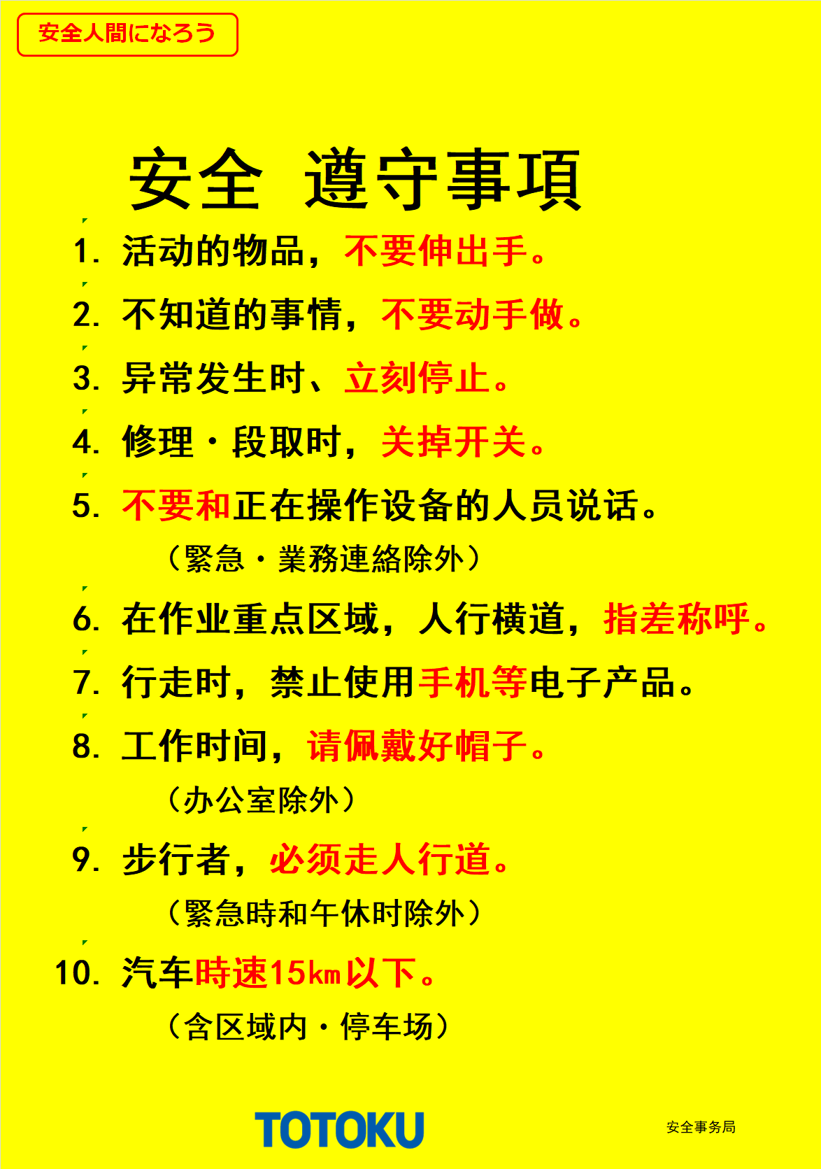 安全 遵守事項(xiàng) 安全活動(dòng) 安全道場
